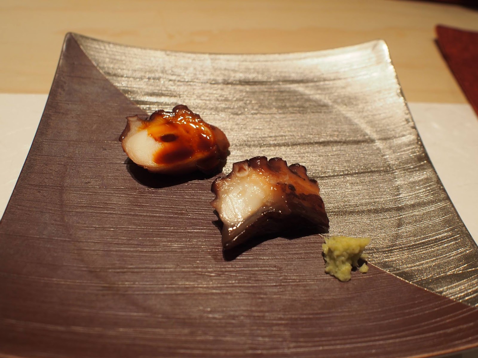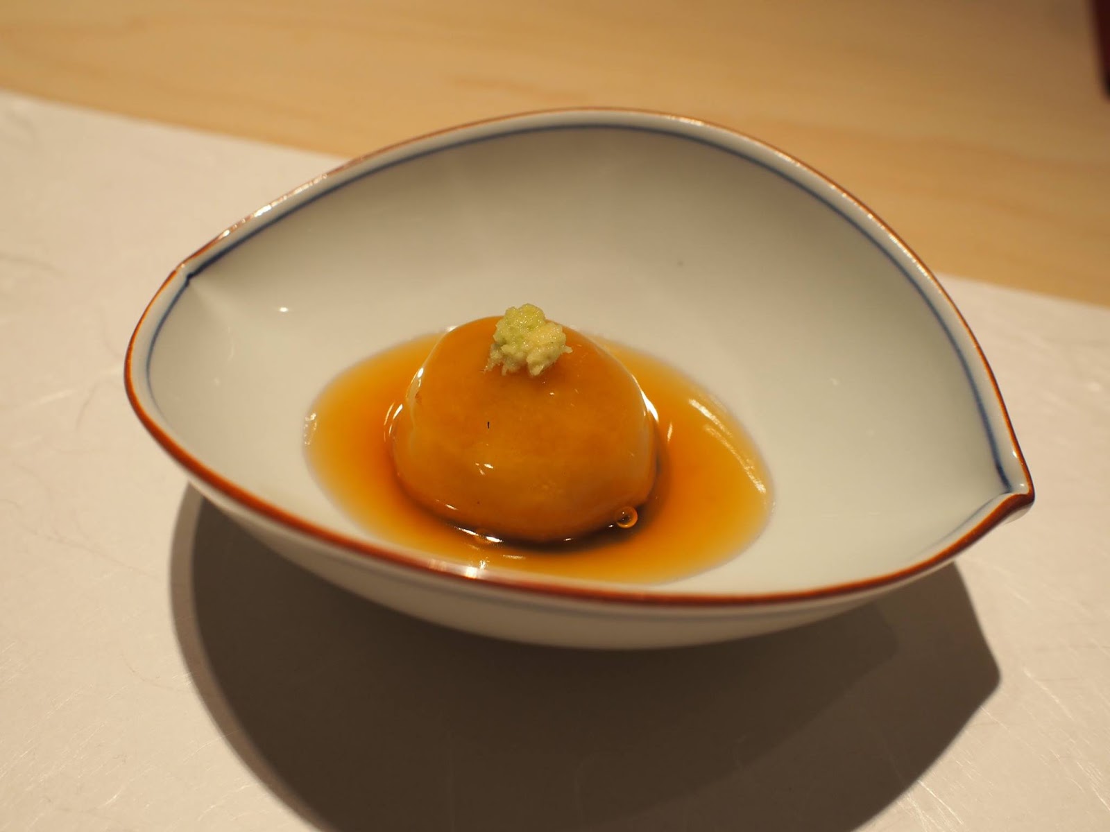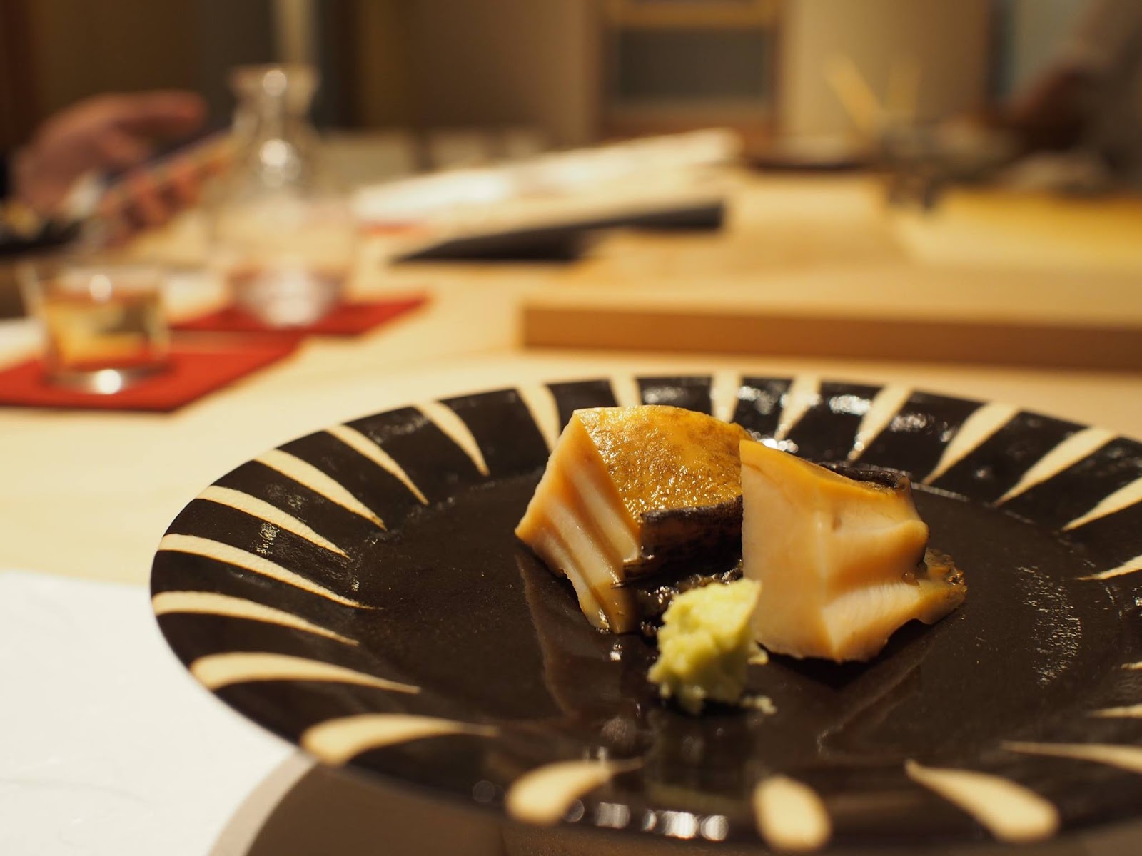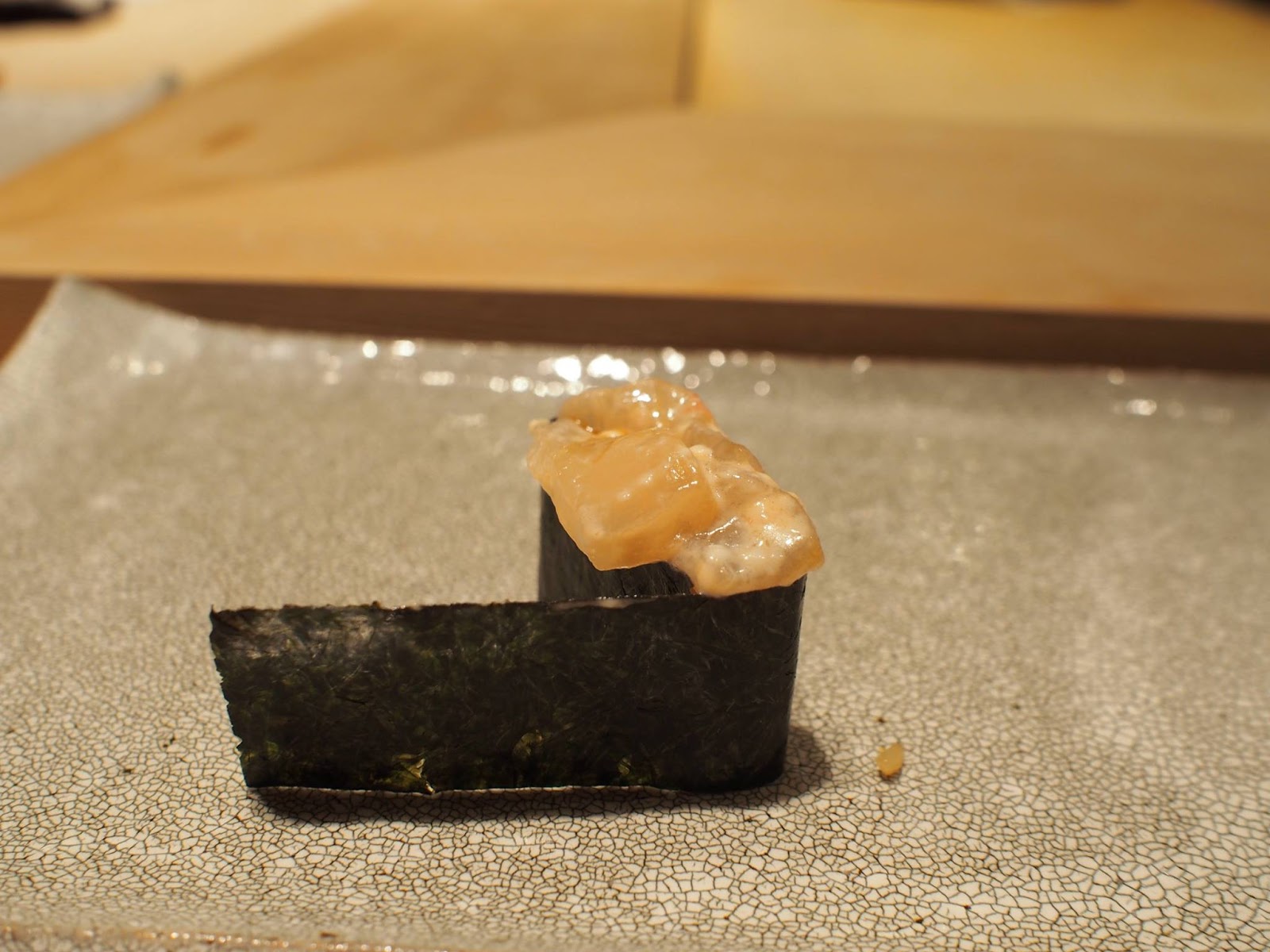 食材與處理手法比較新穎,精緻細膩迷人,同樣的預算在這裡可以吃的比很多銀座高檔壽司店更豐富,席間的滷鮑魚甚至給我有"今年最好吃"的印象,非常柔軟但仍保有彈性,還我們忍不住還加點,接著是用鮑魚肝醬佐紅醋飯,真的令人回味無窮