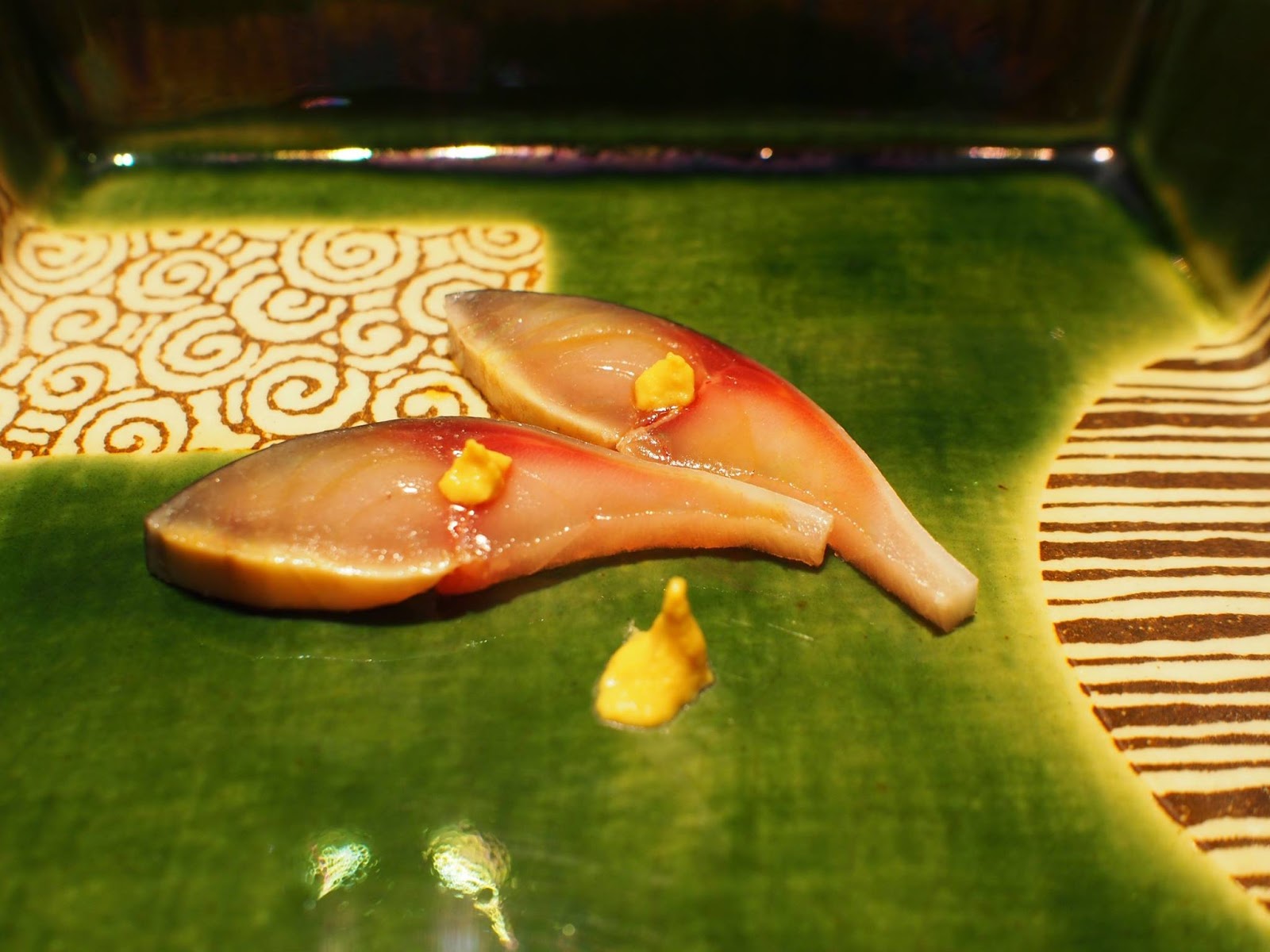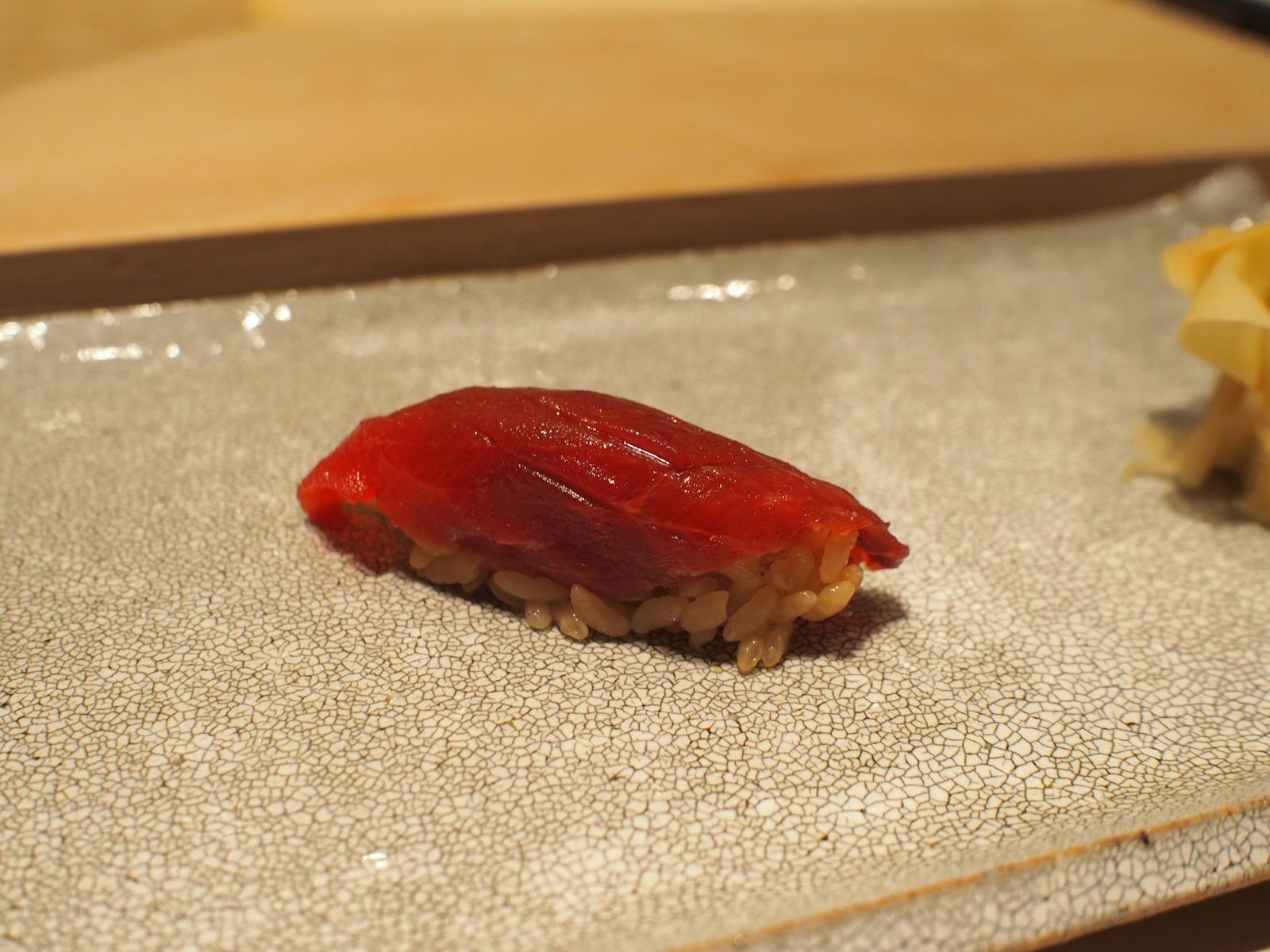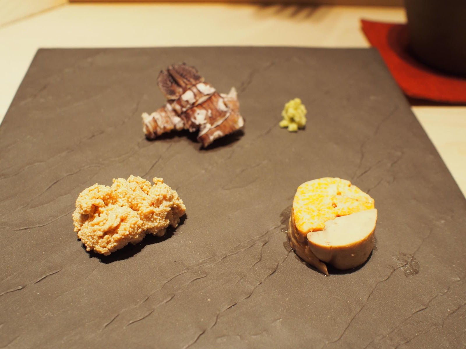 食材與處理手法比較新穎,精緻細膩迷人,同樣的預算在這裡可以吃的比很多銀座高檔壽司店更豐富,席間的滷鮑魚甚至給我有"今年最好吃"的印象,非常柔軟但仍保有彈性,還我們忍不住還加點,接著是用鮑魚肝醬佐紅醋飯,真的令人回味無窮