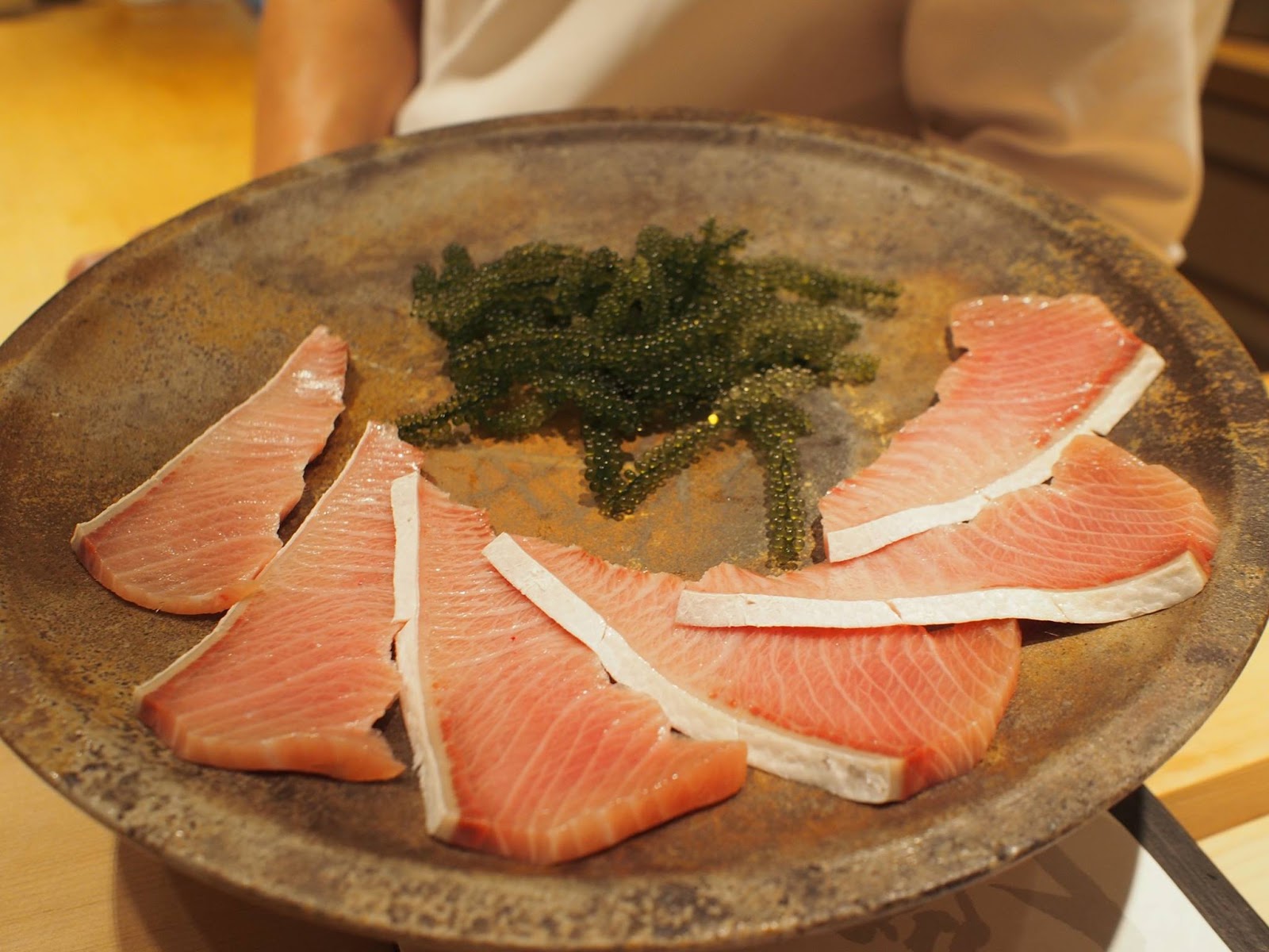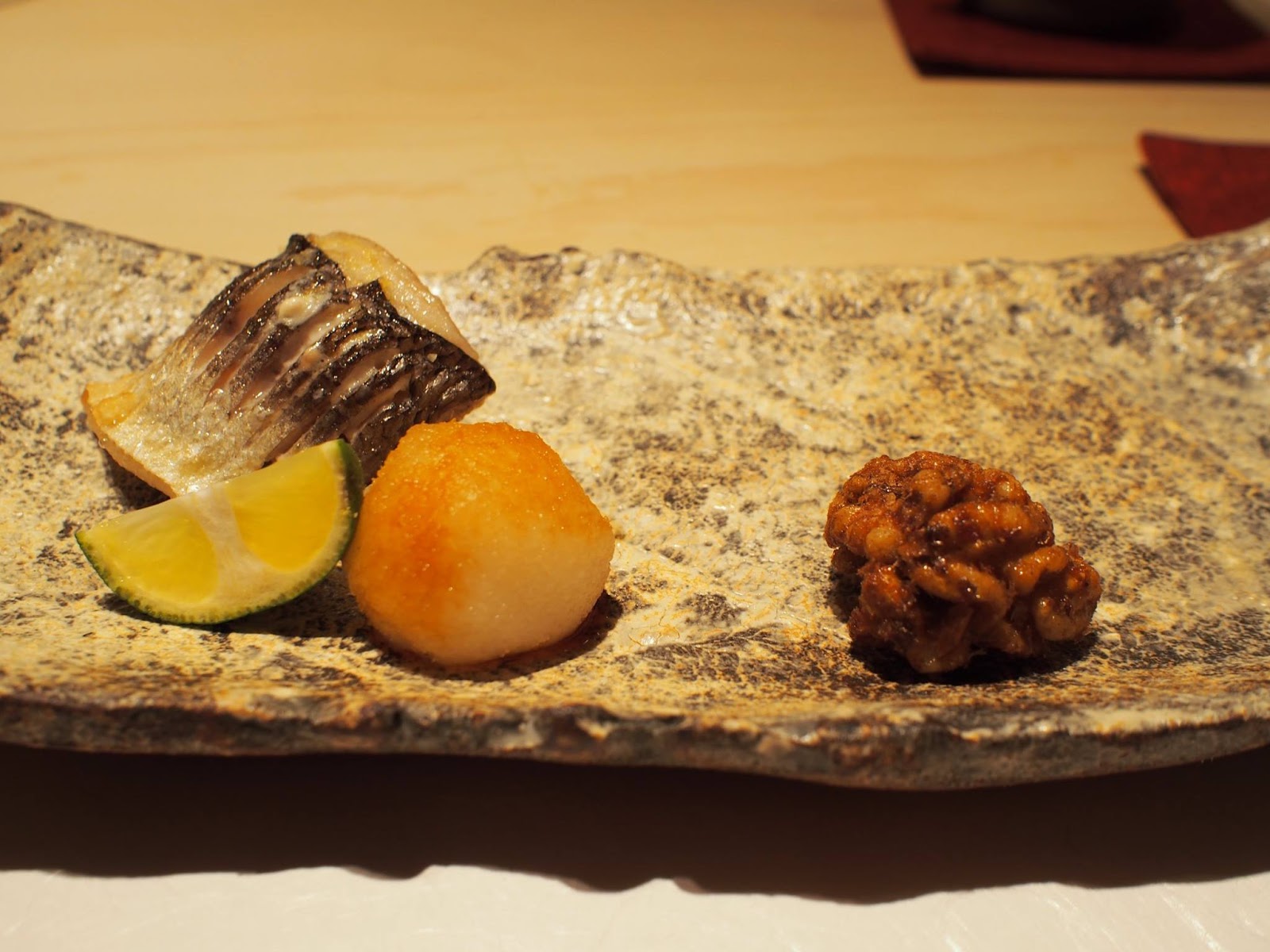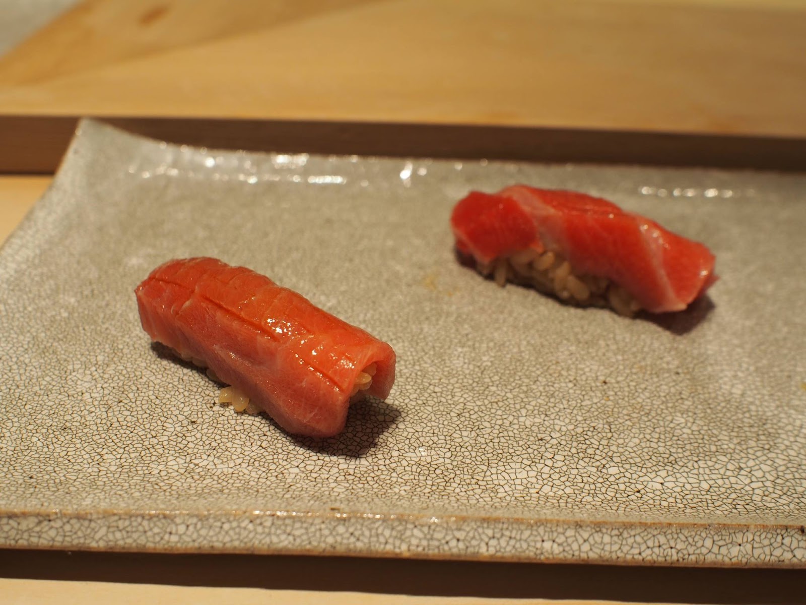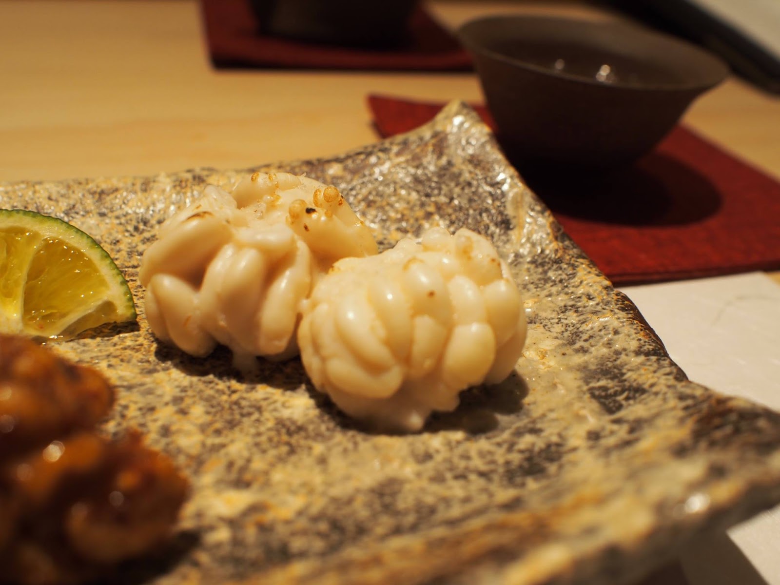 食材與處理手法比較新穎,精緻細膩迷人,同樣的預算在這裡可以吃的比很多銀座高檔壽司店更豐富,席間的滷鮑魚甚至給我有"今年最好吃"的印象,非常柔軟但仍保有彈性,還我們忍不住還加點,接著是用鮑魚肝醬佐紅醋飯,真的令人回味無窮